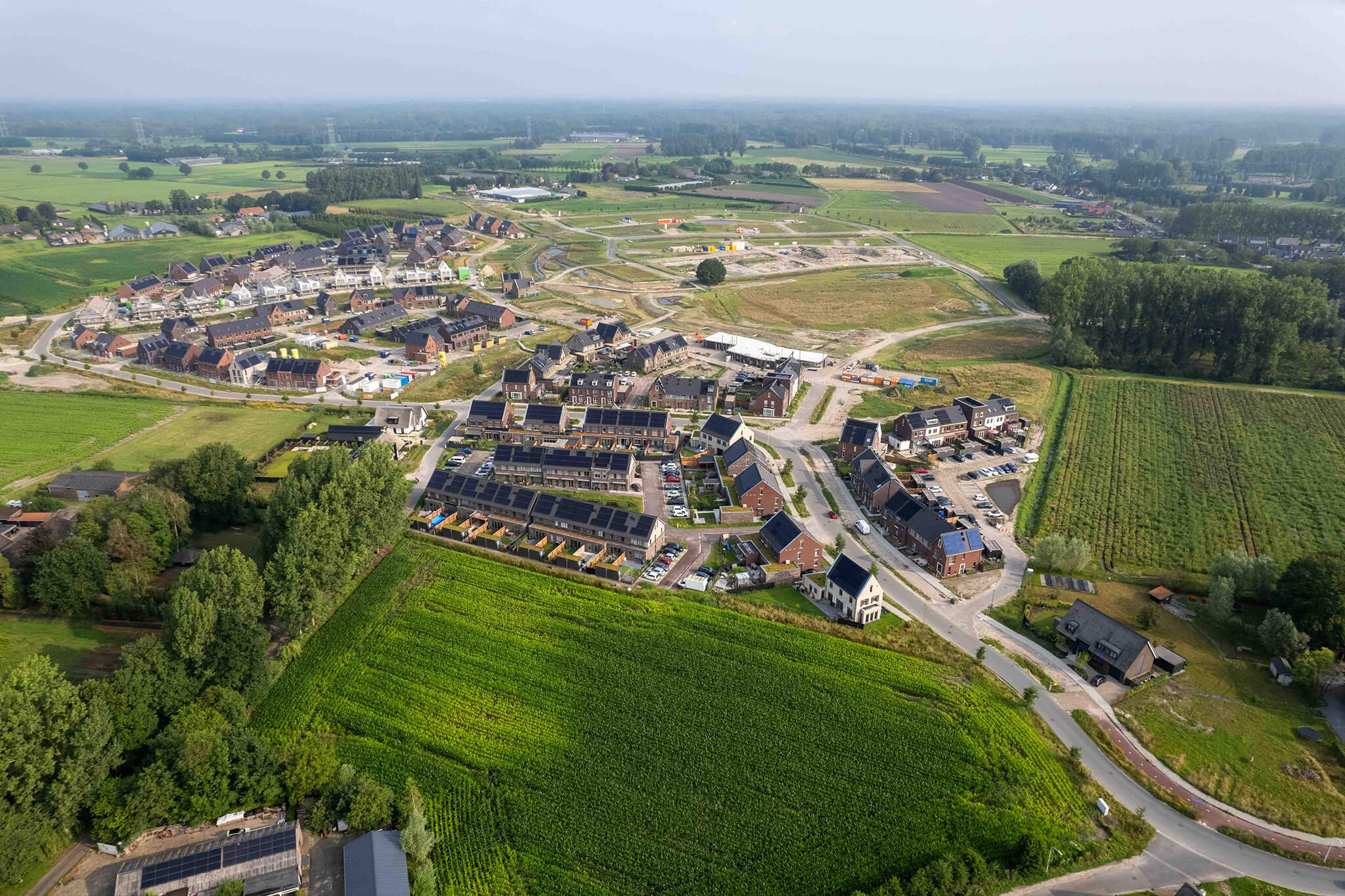 De luchtopnames tonen duidelijk de contouren van de diverse deelplannen; sommige zijn reeds voltooid, andere zijn momenteel in verkoop en weer andere staan op het punt om ontwikkeld te worden. Dit visuele verslag toont onze visie van wonen in Aarlesche Erven!